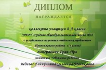 С 25 ноября по 1 декабря 2016 года в ЦДТ Вахитовского района проходил городской конкурс "Зеленая планета". Учащиеся нашей школы совместно с педагогами стали лауреатами и дипломантами в различных номинациях. А Ученики 8 а класса под руководством Гайнуллиной Эльмиры Маликовны получили самую высокую оценку членов жюри. Их работа "Кремль" в номинации "Объемные работы" удостоились звания Гран-При конкурса. Поздравляем всех участников конкурса!