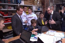 В рамках рабочего визита в Казань 25 марта 2014 года Председатель Правительства РФ Дмитрий Медведев посетил первый в стране частный технопарк «Navigator Campus». Вместе с премьером технопарк посетили полпред президента РФ в ПФО Михаил Бабич, вице-премьер РФ Аркадий Дворкович, министр образования РФ Дмитрий Ливанов, глава республики Рустам Минниханов и мэр Казани Ильсур Метшин и другие официальные лица. Во время посещения технопарка Дмитрий Анатольевич познакомился с работой учеников нашей школы: учащиеся 8а и 7б класса под руководством педагога школы Григорьева Игоря Петровича занимались 3D-моделированием космического корабля «Восток-1», а учащиеся 6 а класса получали навыки радиоэлектронного монтажа микроспутника для участия в конкурсе «CanSat в России». Своими проектами ребята заинтересовали Дмитрия Анатольевича, он отметил творческую атмосферу, царящую в Кампусе, и высоко оценил работу ребят.