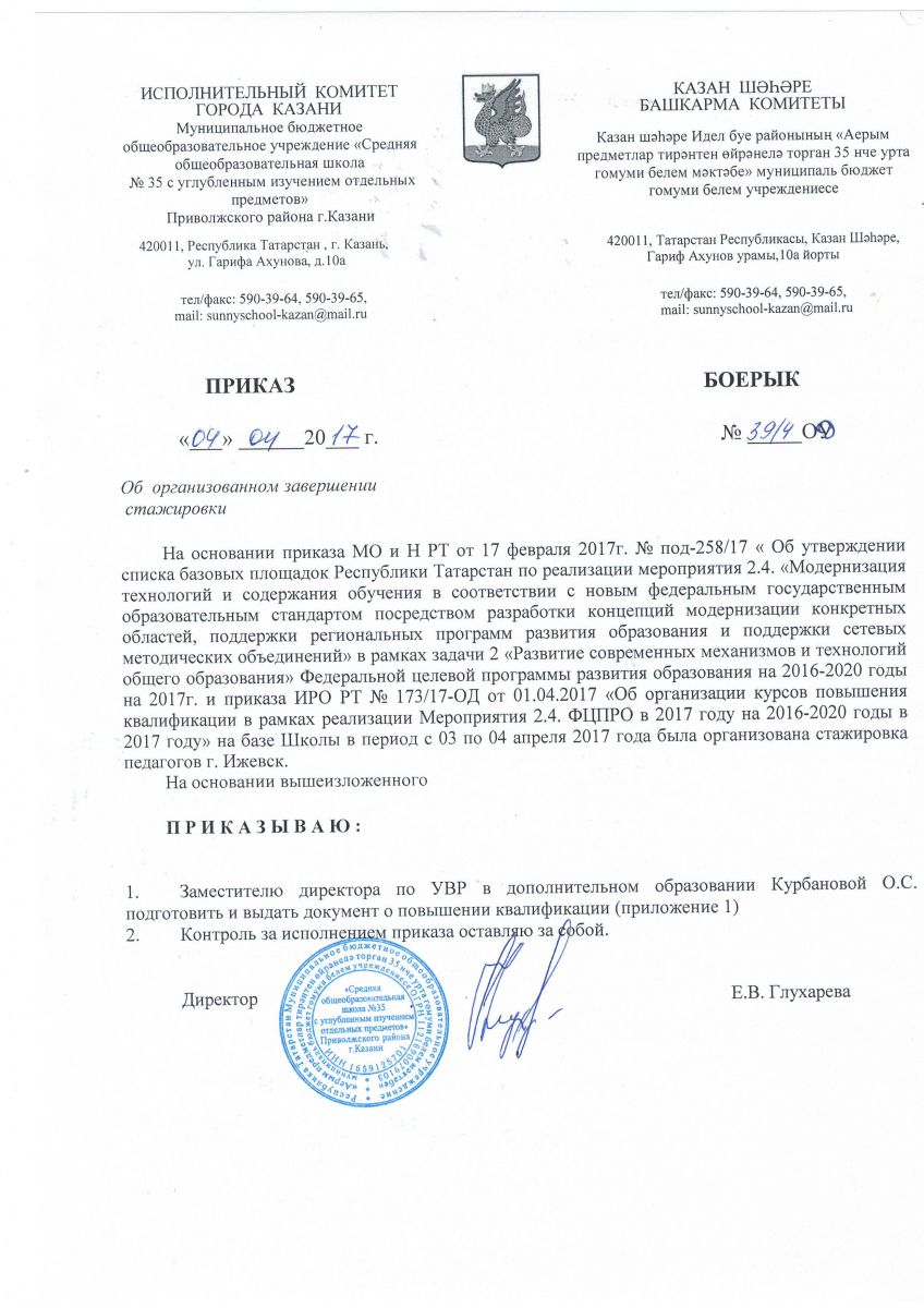- Приказ о завершении стажировки г. Ижевск