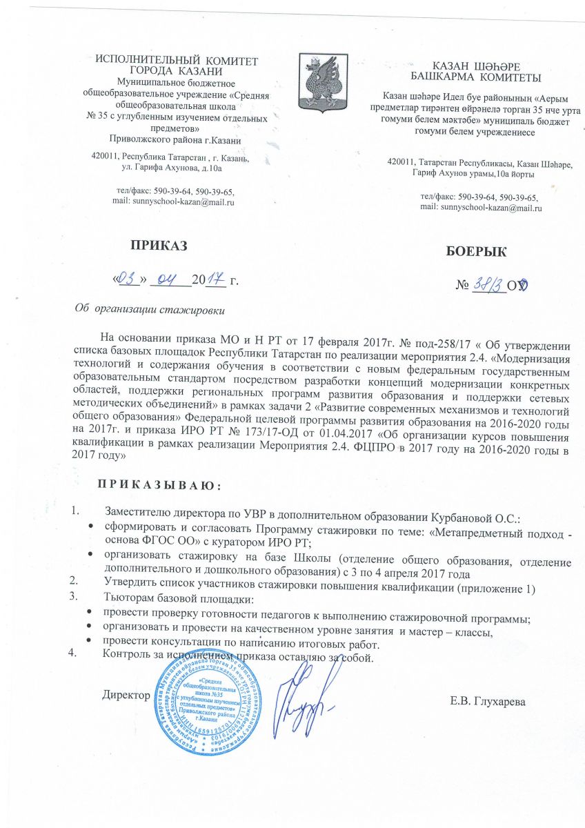 - Приказ об организации стажировки г. Ижевск