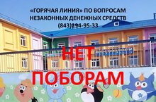 В Министерстве образования и науки Республики Татарстан работает постоянно действующая "горячая линия " для обращения граждан по незаконному сбору денежных средств в детских садах, школах и других учреждениях образования. Телефон "горячей линии" (843) 294-95-33 работает в рабочие дни с 10.00- до 17.00 часов, круглосуточный номер для отправки смс 89372860587