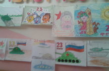 В преддверии праздника воспитатели детского сада организовали выставку детских рисунков, посвящённую настоящим мужчинам, военным, служащим в армии людям. Целью организации выставки стало: дать детям знания об армии, сформировать у них первые представления о родах войск, о защитниках Отечества; познакомить детей с военной техникой; воспитывать любовь к Родине, чувства гордости за свою армию.