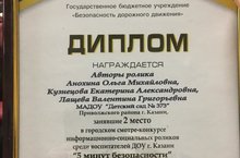 В марте 2019 года в соответствии с планом работы информационно-методического отдела Управления образования г. Казани были проведены итоги городского смотра-конкурса информационно-социальных роликов среди воспитателей ДОУ г.Казани "5 минут безопасности", в котором наши педагоги заняли 2 место. ПОЗДРАВЛЯЕМ!!!