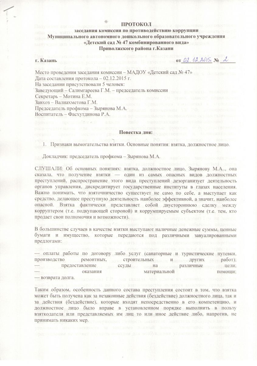 Протокол заседания комиссии по противодействию коррупции № 2 (лист 1)