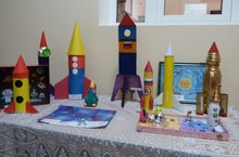 Дети совместно с родителями изготовили макеты ракет, мини понорамы загадочных планет, космические тарелки,