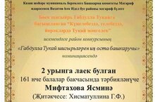 Поздравляем нашу воспитанницу, занявшая 2 место в конкурсе чтецов "Тукай в наших сердцах" .