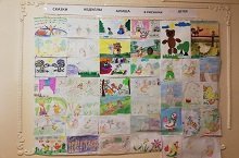 Накануне выставки, воспитатель по обучению родному языку познакомила детей с жизнью и творчеством писателя. Дошкольники предоставили замечательные рисунки, которые они рисовали совместно с родителями, по любимым сказкам писателя: "Зайчишка", "Пчела и оса", "Два петуха", "Гусёнок и лебедёнок".