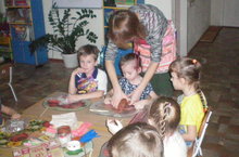 В детский сад идут работать творческие люди, ведь дети такой народ, который ждет от нас от нас все время чего-то нового и необычного. Воспитатели детского сада постоянно повышают свой профессиональный уровень. Поэтому, когда был организован мастер-класс "Волшебная глина" все педагоги с удовольствием приняли в нем участие. Глядя на них нельзя было сдержать улыбку, с таким нескрываемым интересом они лепили свои "изделия". Правду говорят: "Взрослые - это большие дети". Мы в этом убедились уже в который раз.