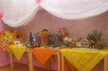В детском саду в соответствии с годовым планом ДОО в рамках проекта "Осень" (с 1 по 26 октября 2018 года) организована выставка детских творческих работ, выполненных с небольшой помощью родителей, в разных технологиях на тему "Художница осень".