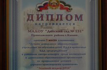 16 марта наш детский сад был награжден дипломом за первое место в районном смотре-конкурсе «Зеленый огонек-2016» среди дошкольных образовательных организаций.
