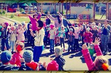 В качестве одного из подарков для "Стрекозы" дети подготовили танцевальный флешмоб, место классической музыки звучали популярные детские хиты, а детские хороводы заменили на энергичные танцы. К флешмобу присоединились и педагоги, которые лихо отплясывали под звуки диско.