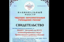 О внесении МАДОУ "Детский сад №131 комбинированного вида" в Национальный реестр ведущих образовательных учреждений России - 2012г. 03.09.2013