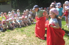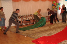Сабантуй! В нашем детском саду ежегодно планируется и проводится этот замечательный, национальный праздник. Мы украшаем наш майдан шарами, флажками. Звучит веселая национальная музыка, проводятся забавные эстафеты и игры: "Бег в мешках", "Донеси яйцо", "Попади в горшок" и др. Этот чудесный праздник сопровождается задорным смехом и доставляет нам много радости.