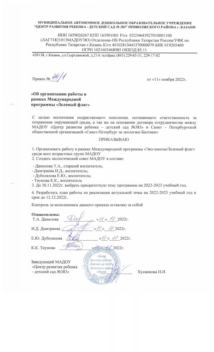 Муниципальное автономное дошкольное образовательное учреждение "Центр развития ребенка - детский сад № 383" Приволжского района г. Казани