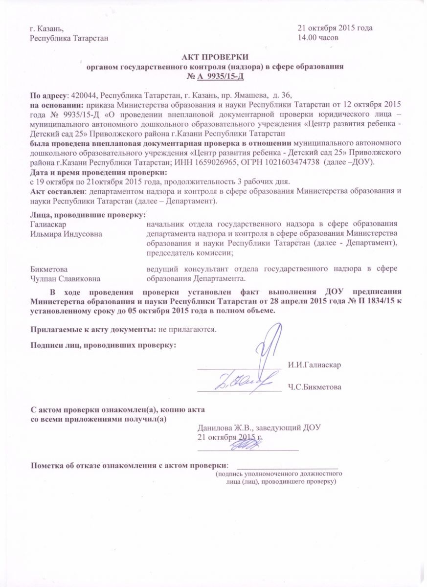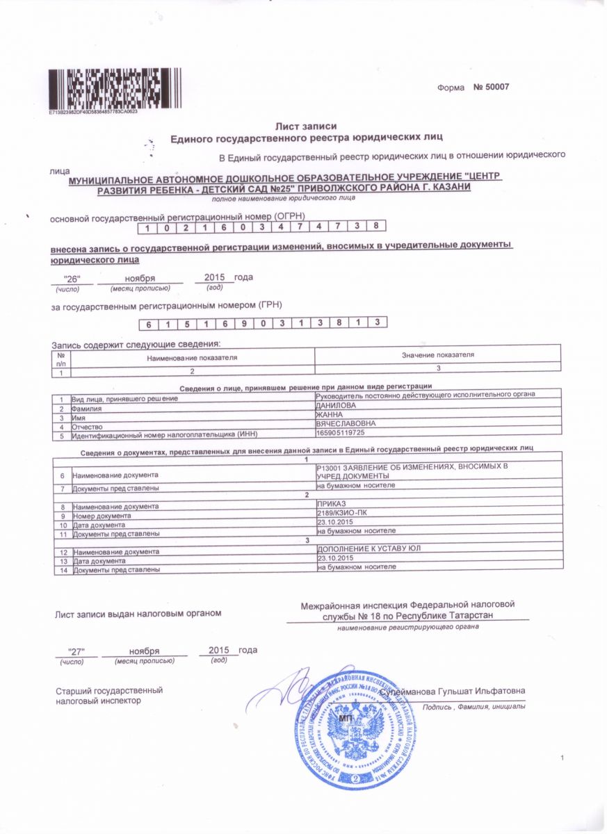 | Короткое название: | МАДОУ "ЦРР - Детский сад №25" Приволжского района г.Казани |