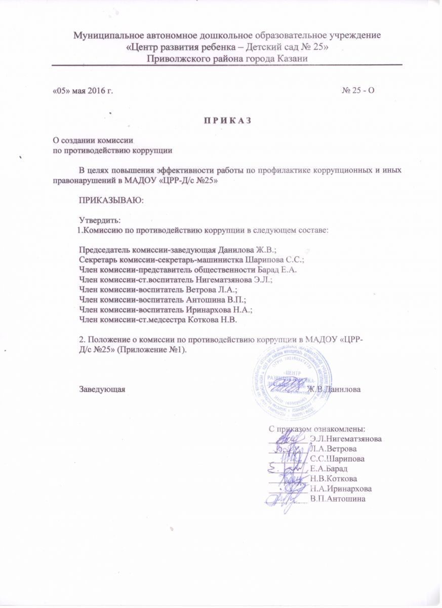 Приказ о создании комиссии и утверждении положения по противодействию коррупци