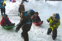 С коньками и салазками.