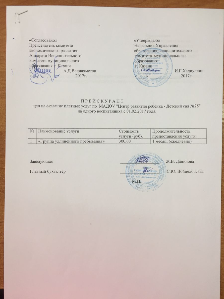 Прейскурант цен на дополнительные услуги (группа удлиненного пребывания)