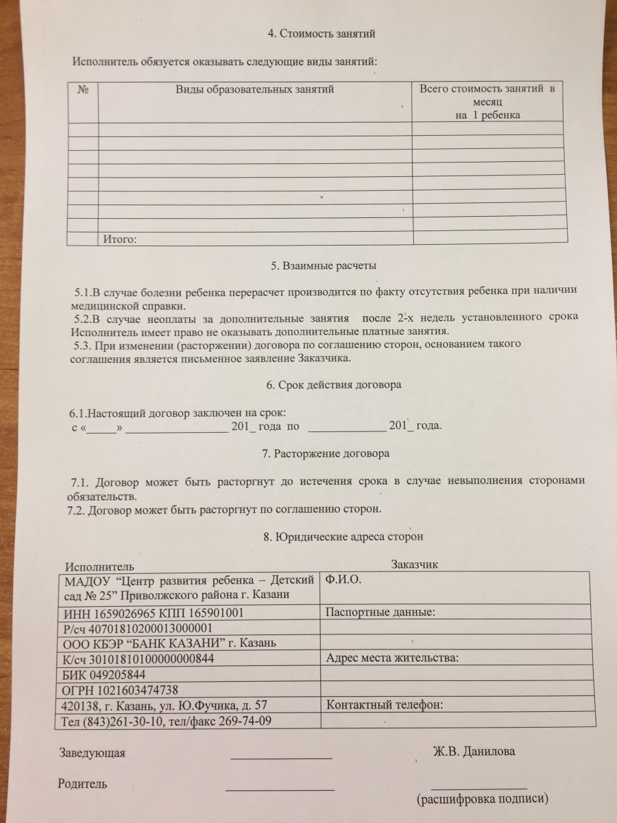 Договор на дополнительные платные услуги 2 стр
