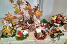 В нашем детском саду был проведен смотр - конкурс "Осенняя пора-очей очарованье". Дети совместно с родителями подготовили очень много интересных поделок и рисунков.