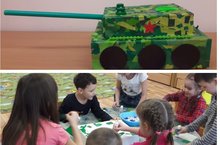 Сегодня дети подготовительной группы №6 объединили свои совместные усилия в изготовлении танка в честь Дня Защитника Отечества. Коллектиная работа протекала увлеченно и весело, а в этом им помогала песня ...... Нажмите "Читать далее" и пройдите по ссылке ...