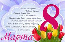 Праздник 8 марта - это замечательный праздник, который наполняет мир добрыми улыбками, искренними признаниями в любви нашим мамам, бабушкам, сестрам. Нет ничего лучше на этом свете ласкового прикосновения материнских рук, их мудрого доброго слова. Они создают уют в доме, наполняют жизнь своих родных и близких любовью, несут красоту и нежность, согревают душевным теплом!