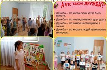 Ребята рассказали о своих друзьях, читали стихи о дружбе, рисовали портреты друзей, слушали художественные произведения о дружбе. Дети пришли к выводу, что у дружбы не бывает выходных и что дружить – значит, помогать друг другу, не обижать и делиться друг с другом игрушками каждый день.