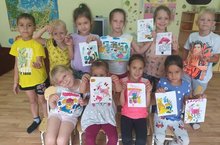 С большим воодушевлением с помощью акварели ребята рисовали морские пейзажи с его обитателем дельфином , разукрашивали веселого кита в ярко синие цвета.