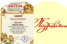 2 место - Фёдорова Эмилия, подготовительная группа №10, педагог Гайнутдинова Э.И3 место - Сунгатуллин Данис, подготовительная группа №10, педагог Гайнутдинова Э.ИНоминация "Декоративно-прикладного и изобразительного творчества"1 место - Низамов Данис, младшая-средняя группа №8, педагог Сираева Л.НПоздравляем наших победителей и желаем дальнейших побед!!! -