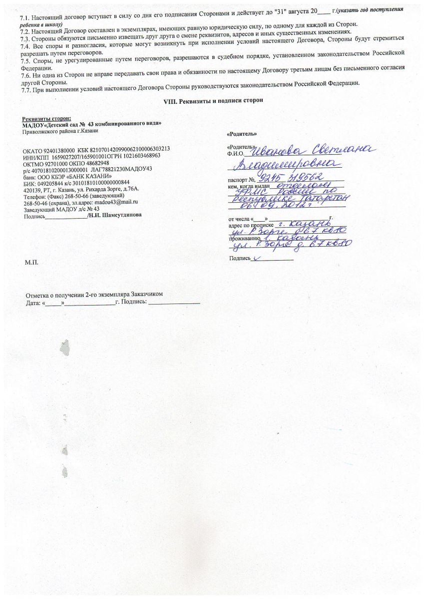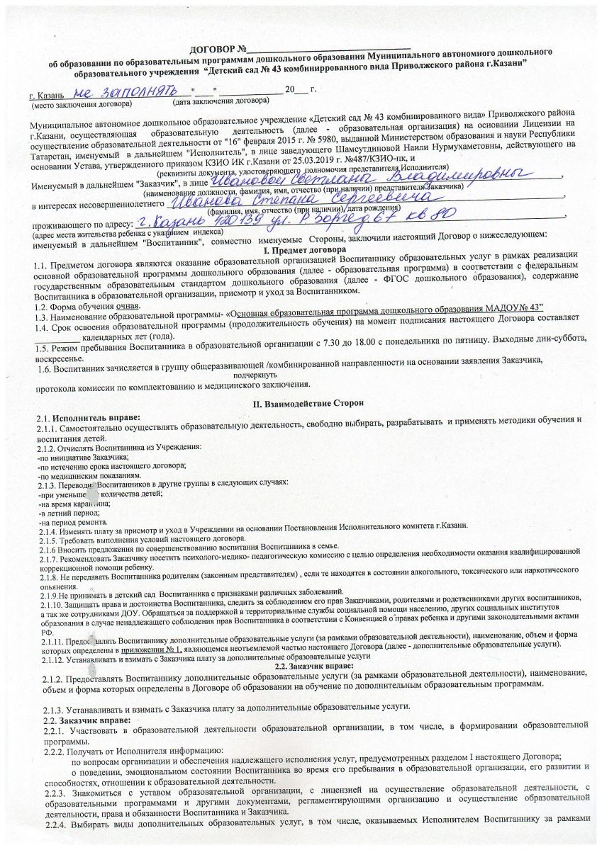 Внимание! Основной договор с ДОУ распечатывается в двух экземплярах!