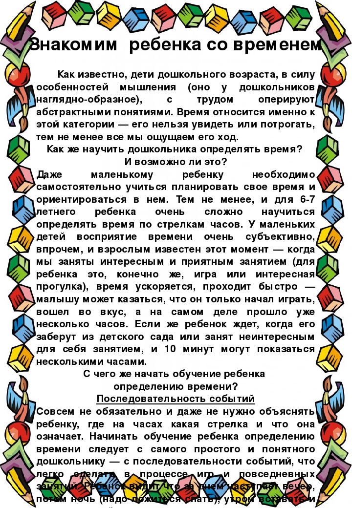 - Памятка для родителей Знакомим детей со временем