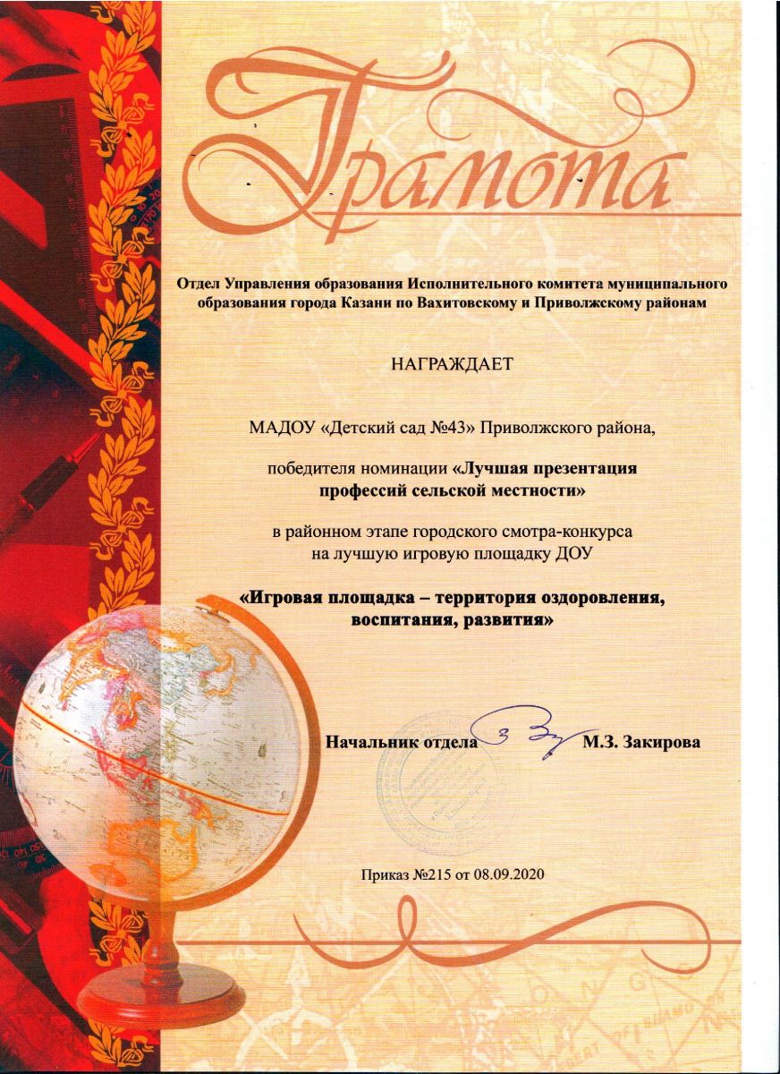 - Грамота победителя "Лучшая презентация профессий сельской местности"