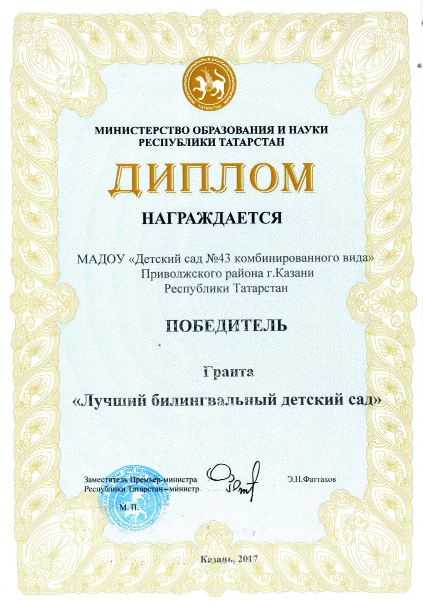 - Диплом "Лучший билингвальный детский сад" 2017