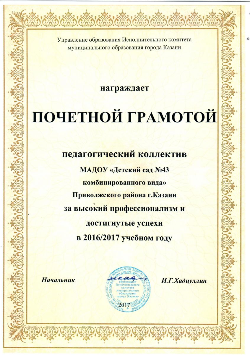 - Почётная грамота за достигнутые успехи 2016-2017г