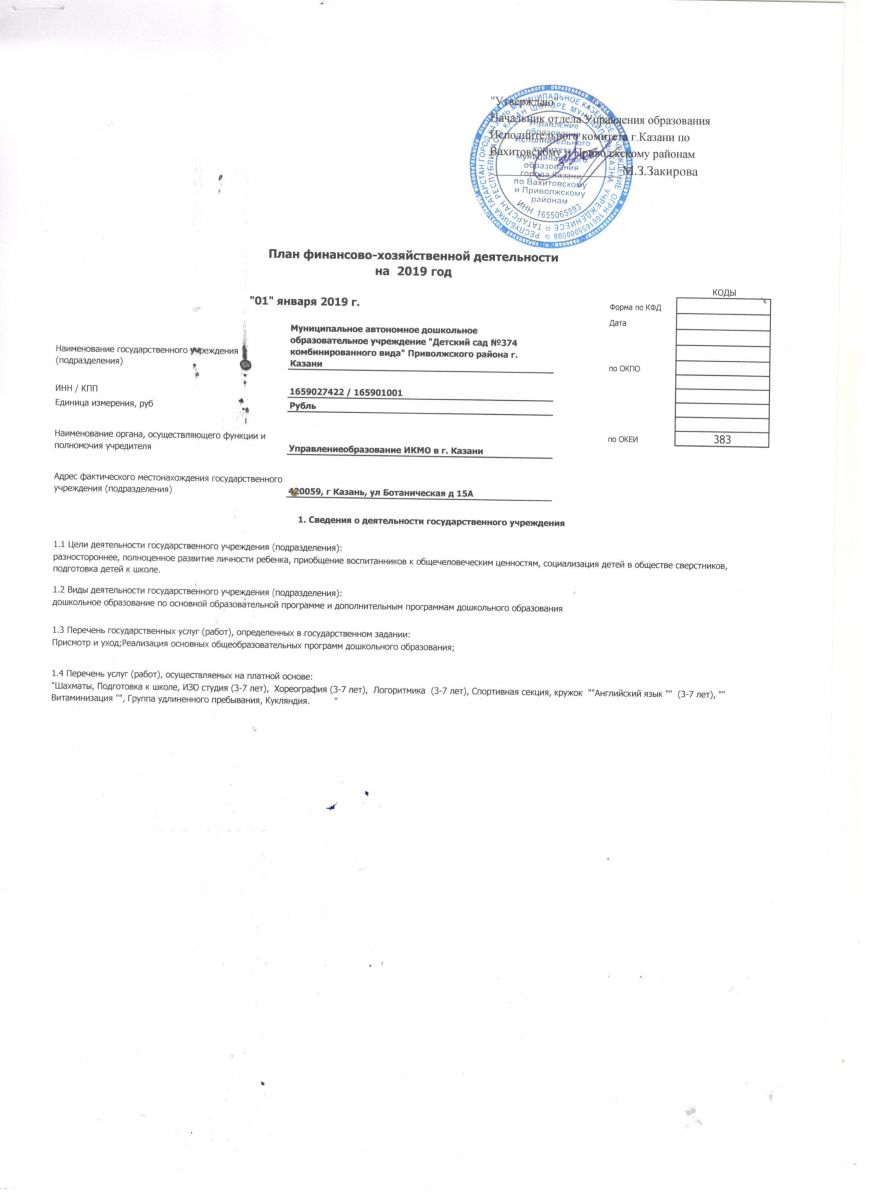 план финансово-хозяйственной деятельности на 2019