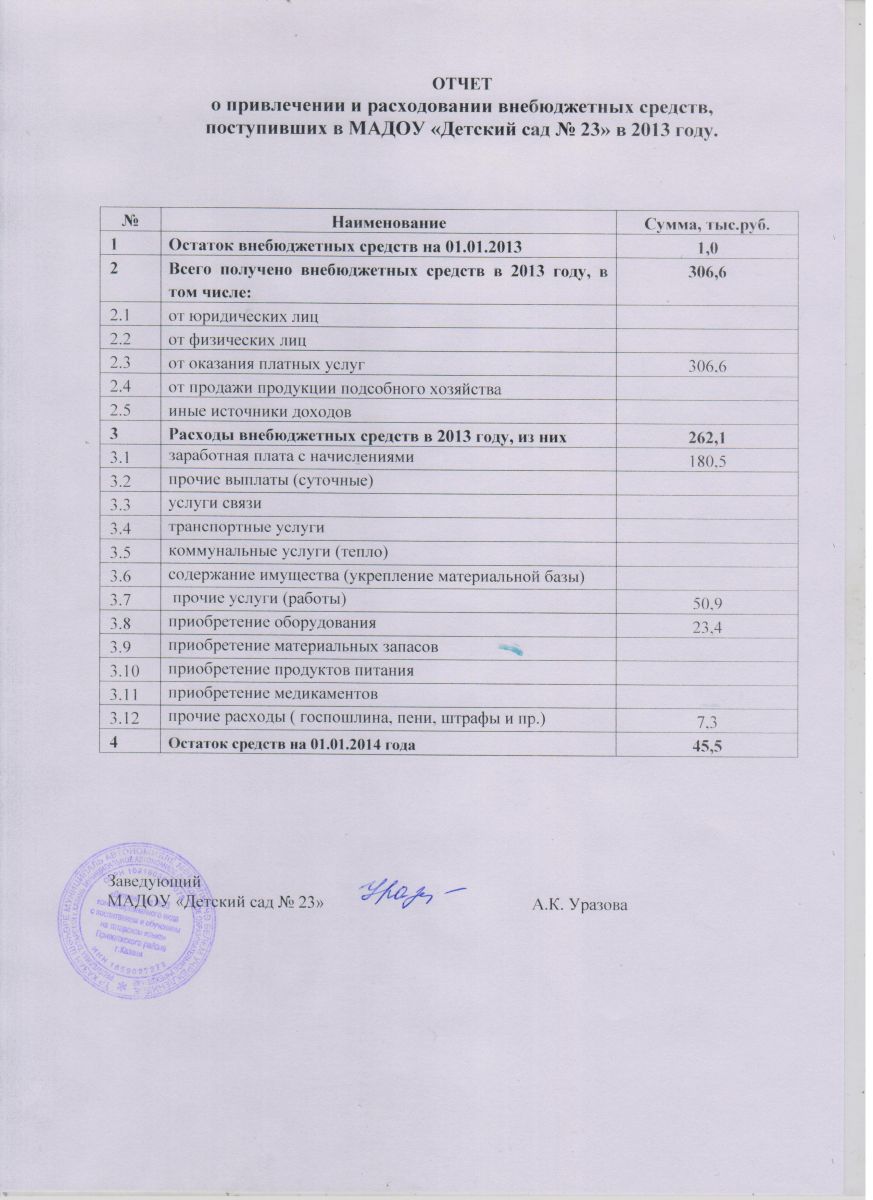 ОТЧЕТ О ПРИВЛЕЧЕНИИ И РАСХОДОВАНИИ ВНЕБЮДЖЕТНЫХ СРЕДСТВ ЗА 2013 ГОД