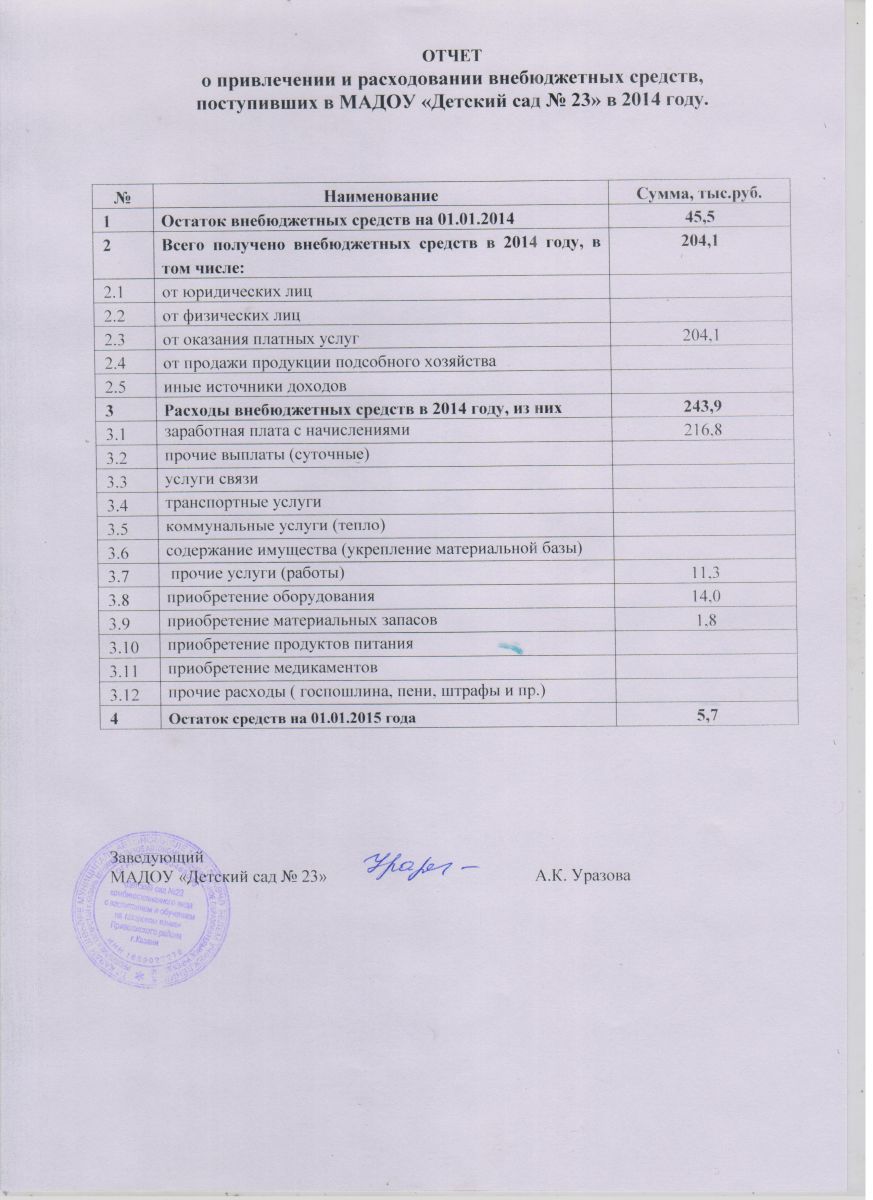 ОТЧЕТ О ПРИВЛЕЧЕНИИ И РАСХОДОВАНИИ ВНЕБЮДЖЕТНЫХ СРЕДСТВЗА 2014 ГОД