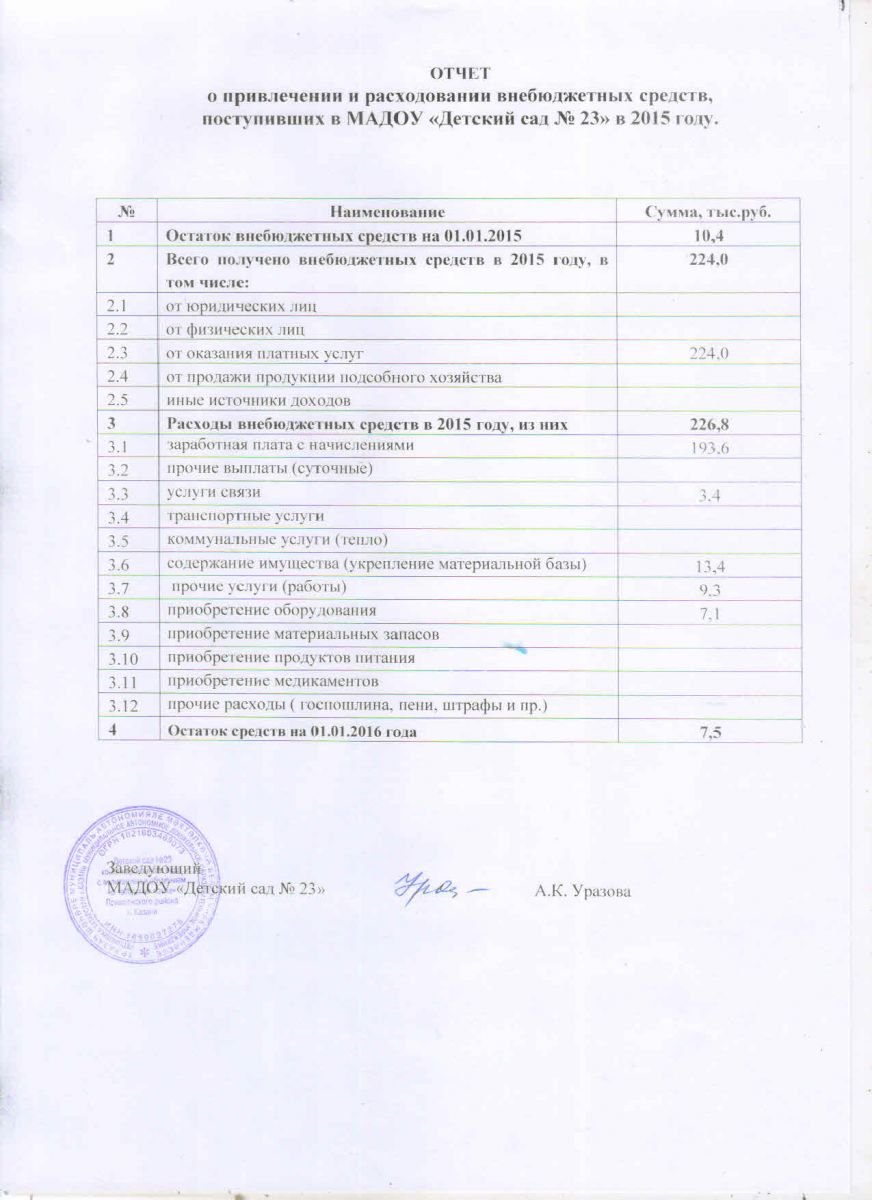 ОТЧЕТ О ПРИВЛЕЧЕНИИ И РАСХОДОВАНИИ ВНЕБЮДЖЕТНЫХ СРЕДСТВ ЗА 2015 ГОД