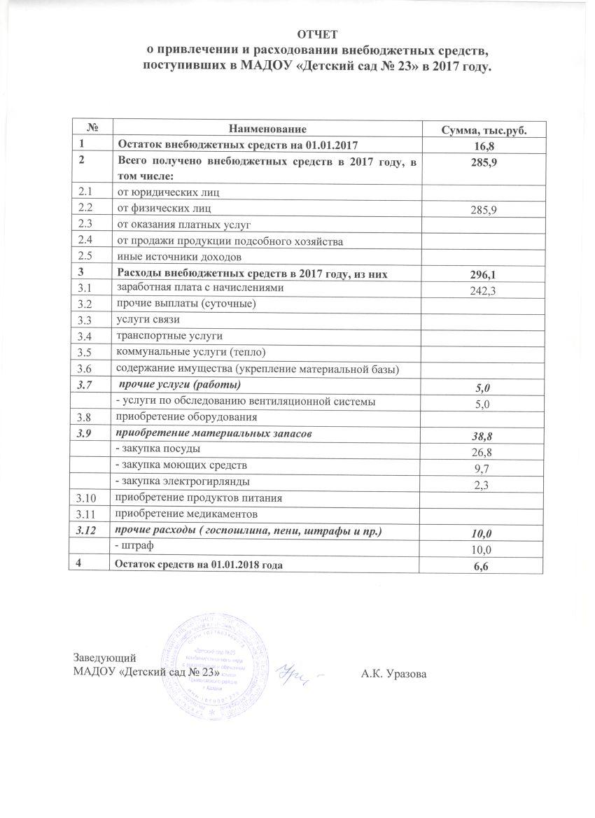 ОТЧЕТ О ПРИВЛЕЧЕНИИ И РАСХОДОВАНИИ ВНЕБЮДЖЕТНЫХ СРЕДСТВ ЗА 2017 ГОД