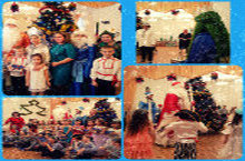 Ребята пришли в маскарадных костюмах. И с удовольствием рассказывали стихи, пели песни, участвовали в разнообразных конкурсах, выполняли забавные задания сказочных персонажей. В конце представления ребята с огромной радостью фотографировались с Дедом Морозом и Снегурочкой.