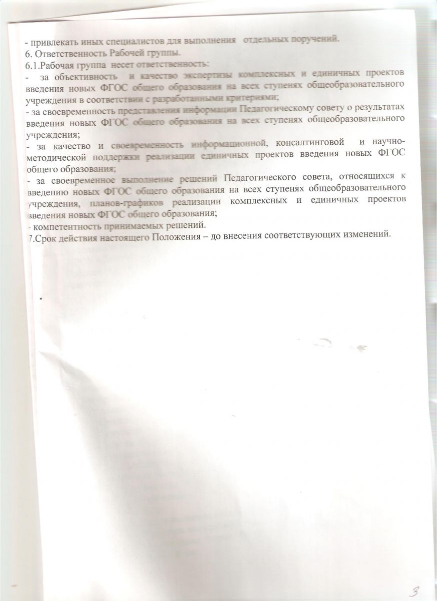 Положение о рабочей группе по введению ФГОС