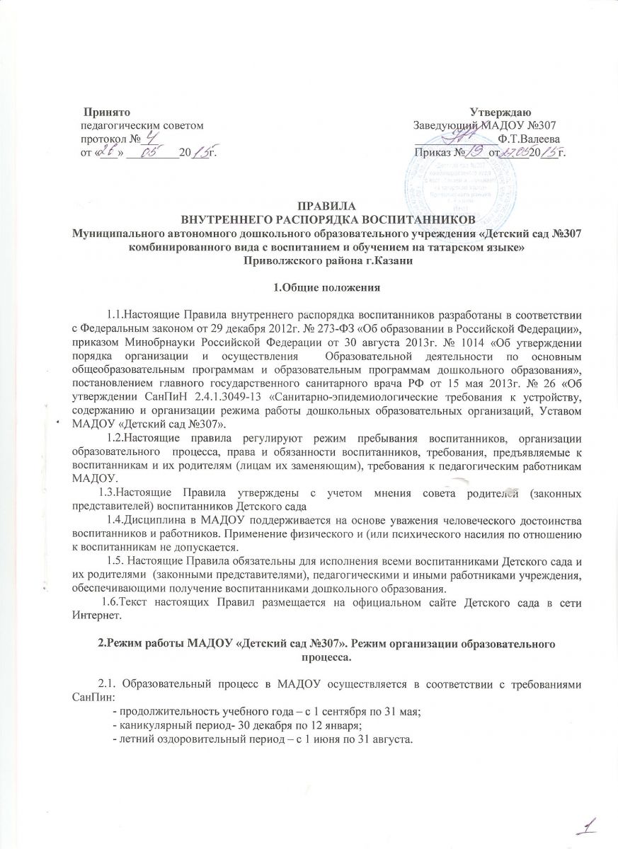 Правила внутреннего распорядка воспитанников