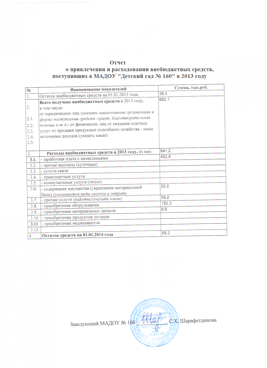 Отчет о привлечении и расходовании внебюджетных средств учреждения за 2013 год