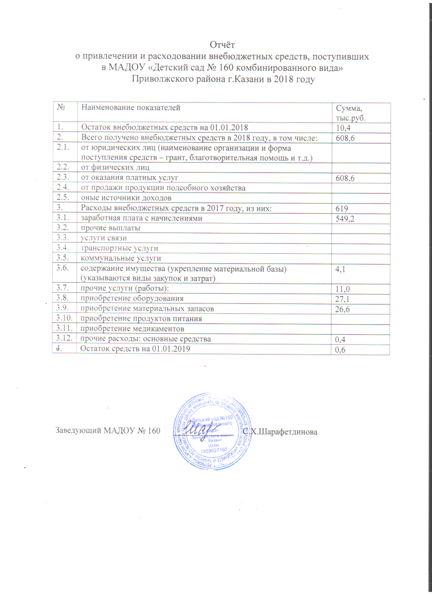 Отчет о привелчении и расходовании внебюджетных средств учреждения за 2018 год