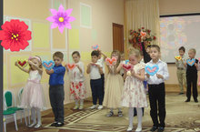 В связи с карантинными мероприятиями, утренники, посвященные мамам и бабушкам, прошли без присутствия родителей. Тем не менее,дети были настроены на оптимистичный лад: подготовили веселые танцы, песни, стихотворения и поделки. Все утренники, начиная со средней группы, былы оформлены в виде театрализованных постановок, где главными актерами были сами дети. Они мастерски перевоплотились в героев из "Красной шапочки", "Колобка" и "Кроколила Гены".