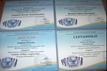 Педагоги и воспитанники детского сада участвовали во Всероссийском конкурсе творческих работ. Они были награждены благодарственными письмами, дипломом и сертификатом.