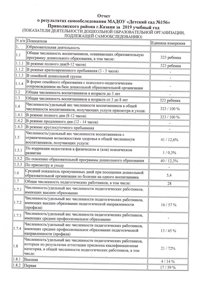 Показатели деятельности МАДОУ 156, подлежащей самообследованию за 2017 год