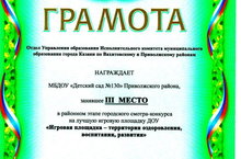 Наш детский сад занял III место в районном этапе городского смотра-конкурса на лучшую игровую площадку ДОУ "Игровая площадка - территория оздоровления, воспитания, развития"! Поздравляем !!!