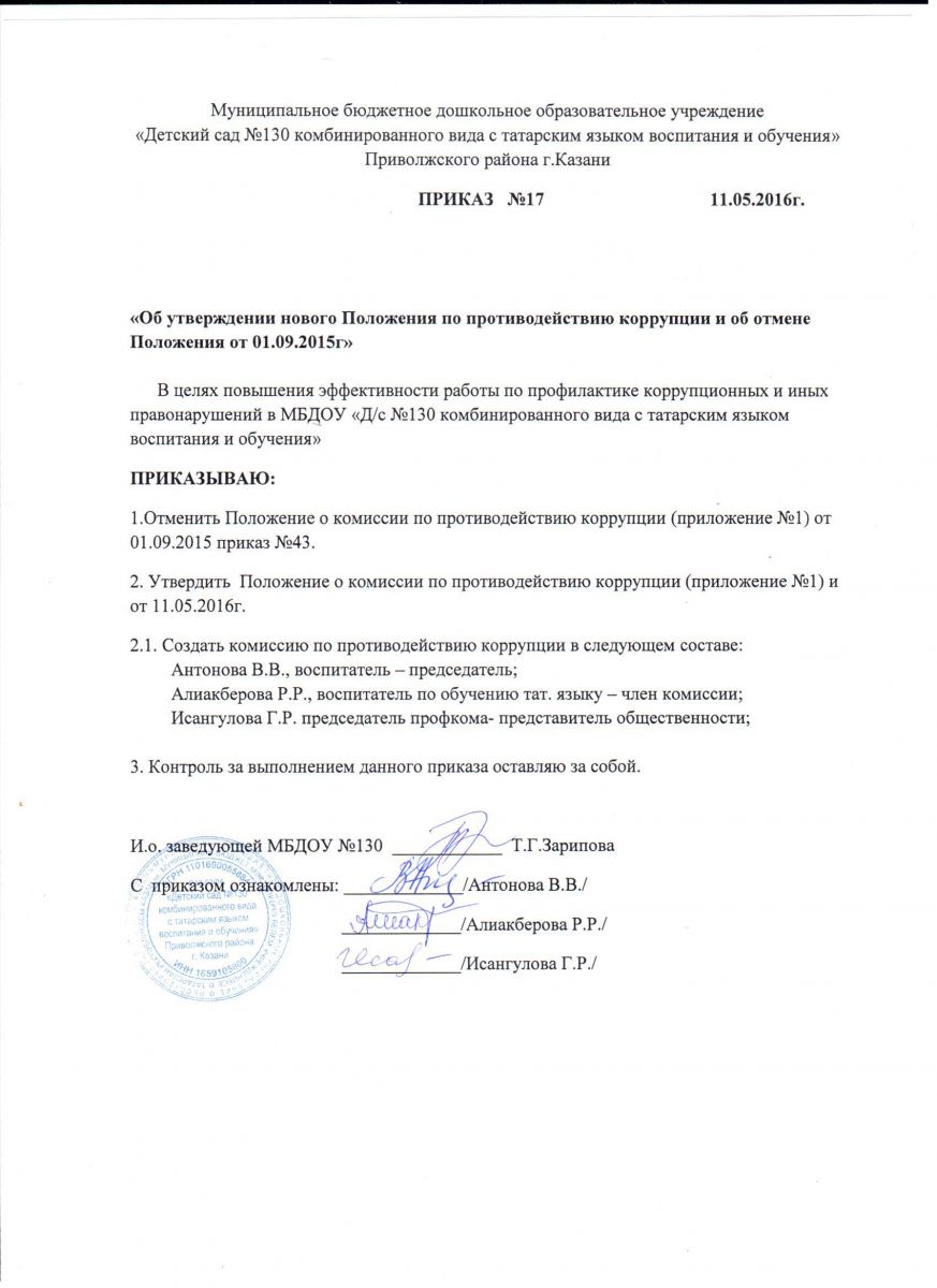 Приказ об утверждении Нового положения о комиссии по противодействию коррупции