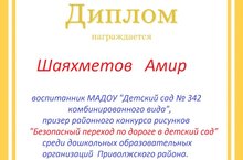 Поздравляем нашего воспитанника с призовым участием в районном конкурсе рисунков "Безопасный переход по дороге в детский сад".